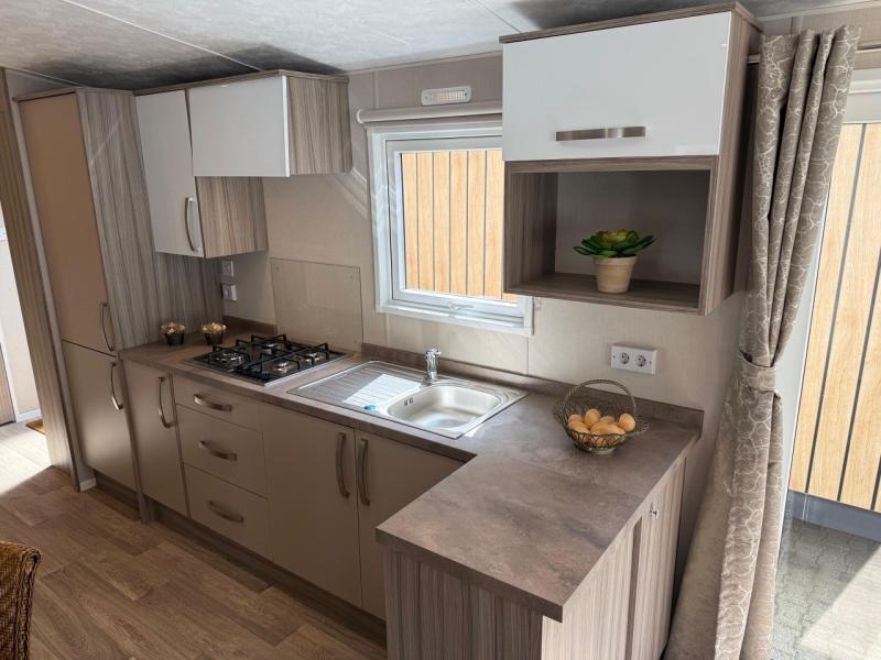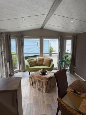 Het chalet beschikt over een ruime, lichte woonkamer met openslaande deuren naar het terras perfect om te ontspannen en te genieten van het buitenleven.De moderne keuken is voorzien van diverse inbouwapparatuur.Daarnaast zijn er twee ruime slaapkamers met ingebouwde kasten.De badkamer is voorzien van een douche en badmeubel. Er is een aparte toilet .