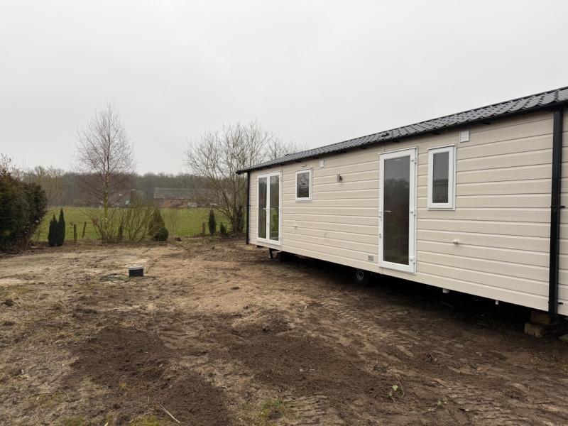 Te koop: een mooie en onderhoudsarm nieuwe kunststof Elvira chalet op een kavel van 250m² met een eigen parkeerplaats.
